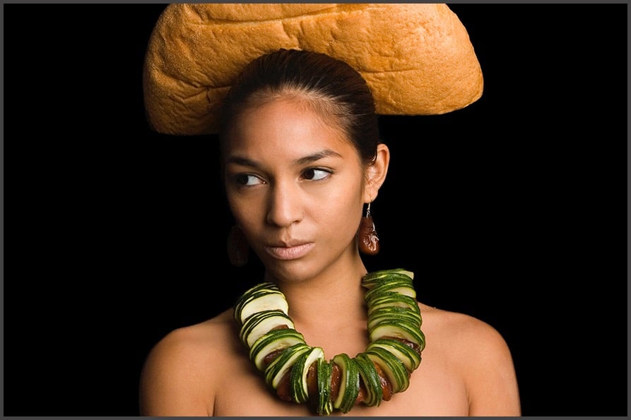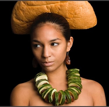 Morocco | Head gear: Moroccan bread | Earring: dates | Necklace: zucchini and dates