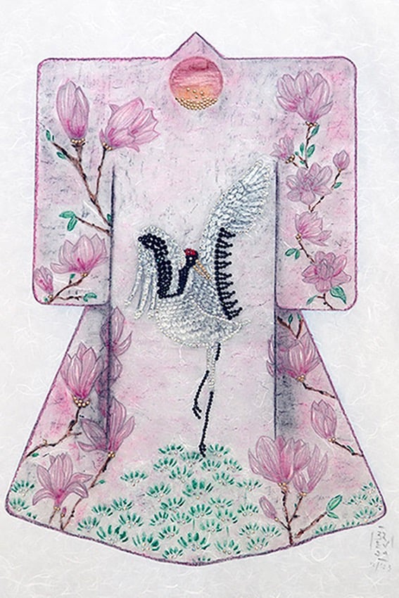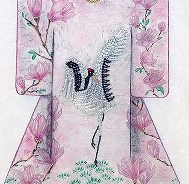 Mixed media: acrylic paint, soft pastel, charcoal and Swarovski stones