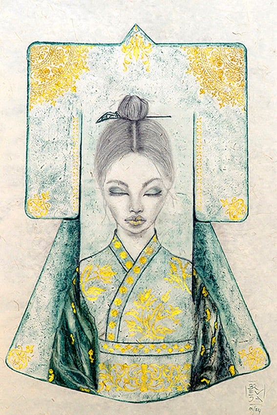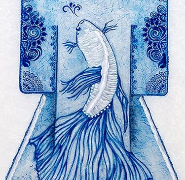 Mixed media: acrylic paint, soft pastel, charcoal, graphite powder and fine liner.