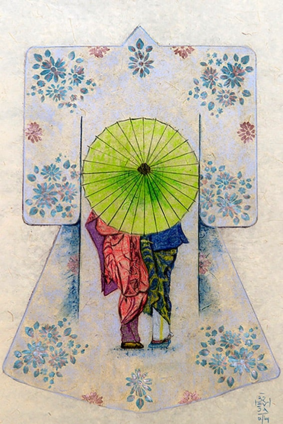 Mixed media: soft pastel pencils and soft pastel chalk.